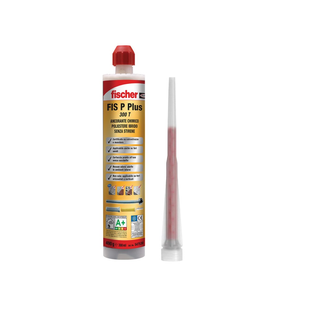 Ancorante chimico poliestere ibrido senza stirene per ancoraggi certificati in muratura e calcestruzzo non fessurato. Adatto per l’ancoraggio di: recinzioni e grigliati metallici, carpenterie leggere, falegnameria, porte blindate, serramenti, tendaggi, antenne. La tixotropia calibrata permette un ottimo funzionamento per applicazioni in orizzontale e in verticale (la resina non gocciola e non cola permettendo un’ottima aderenza della barra). L’assenza di stirene ed il ridotto contenuto di composti organici volatili (VOC- COV) ne consente l’uso in ambienti interni. La resina è applicabile anche in fori umidi: in questo caso i tempi per l’applicazione del carico vanno raddoppiati. Gli agenti ibridizzanti contenuti nell’ancorante chimico FIS P PLUS consentono di mantenere alti livelli di carico per l’intervallo di temperatura compreso fra -40 °C fino a +80 °C.