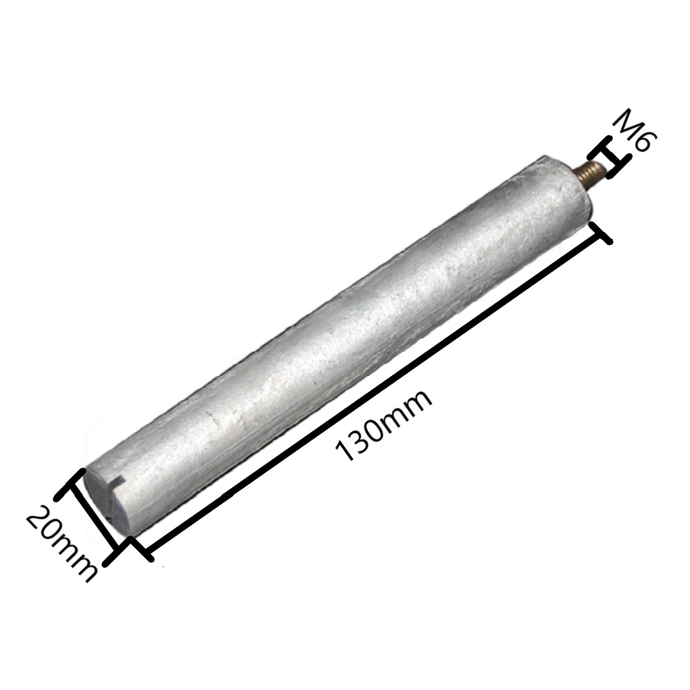 Anodo di magnesio per scaldabagni 10-15-20 litri. Lunghezza 130 mm, diametro 20 mm, filetto M6.