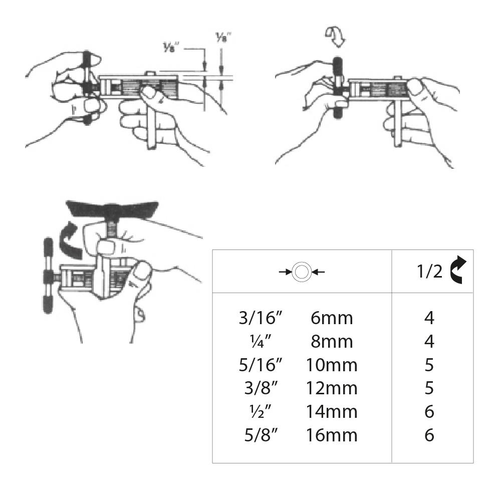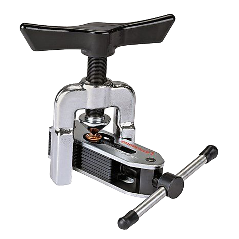 La pratica cartellatrice ha un unico ed universale sistema di bloccaggio del tubo, il quale permette di svasare qualsiasi misura di tubo entro i 3/6″ (4,7mm) a 5/8″ (16mm) diametro esterno. La sua struttura robusta, presenta un cono temprato con speciale geometria, la quale permette di realizzare colletti precisi e senza strappi e con superficie liscia. Inoltre il fissaggio autocentrante, agevola l’applicazione, su tutti i diametri del tubo.