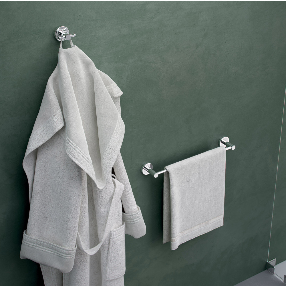 L’appendiabiti doppio cromato Felce è utilizzato per appendere accappatoi, asciugamani, borse e accessori in bagno, corridoio o ingresso. Grazie ai due ganci, permette di appendere più capi senza occupare spazio, unendo praticità ed efficienza.