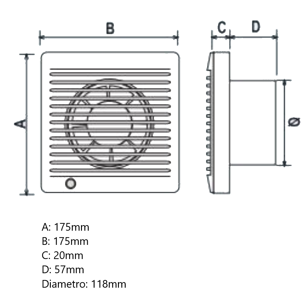 Dimensioni: 175 x 175 x 76