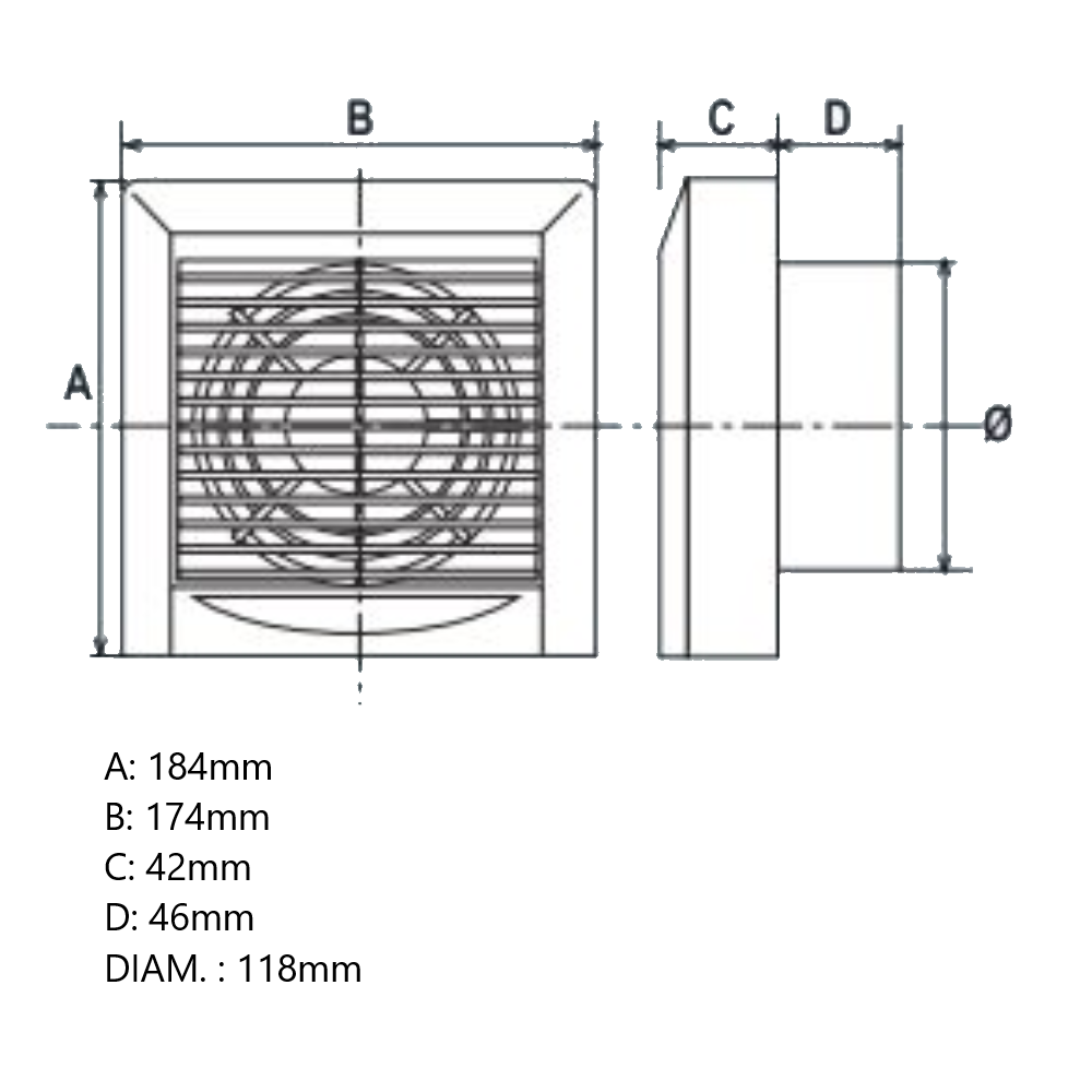 Aspiratore elicoidale a griglia fissa. Si raccorda facilmente al tubo di canalizzazione, attraverso un giunto. Detto anche estrattore d’aria, serve a purificare l’aria e ad aiutare l’areazione naturale, soprattutto in ambienti in cui mancano le finestre oppure sono troppo piccole per arieggiare a sufficienza. Inoltre, un buon aspiratore, combatte l’umidità, che oltre a provocare lo sviluppo di muffe è nociva per la salute umana. Gli aspiratori elicoidali, a differenza degli altri, muovono volumi d’aria notevoli a bassa pressione. Grado di protezione IP44. Elevato grado di protezione dalla penetrazione di acqua (spruzzi d’acqua, umidità) e da corpi estranei.