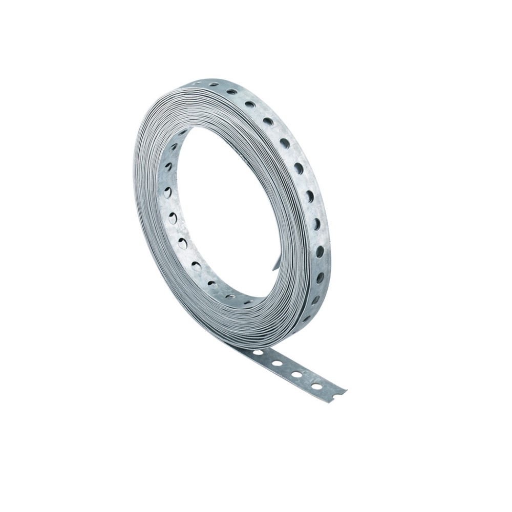Bandella preforata in acciaio zincato LBV per tutte le applicazioni. Adatta per il fissaggio di tubi e cavi durante le fasi di costruzione. Lunghezza 10 mt per 12 mm di larghezza. Spessore 0,8 mm.