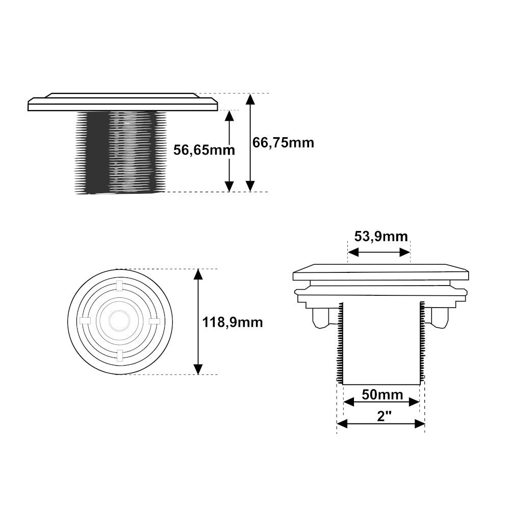 La bocchetta è dotata di una filettatura da 2″, un diametro interno di Ø50mm ed un ugello di immissione da 20mm. Inoltre grazie alla fornitura di tutto il necessario per il montaggio e al suo design ergonomico, l’installazione risulterà semplice e veloce. In dotazione è presente un anello di serraggio, flangia, guarnizioni e viti inox.