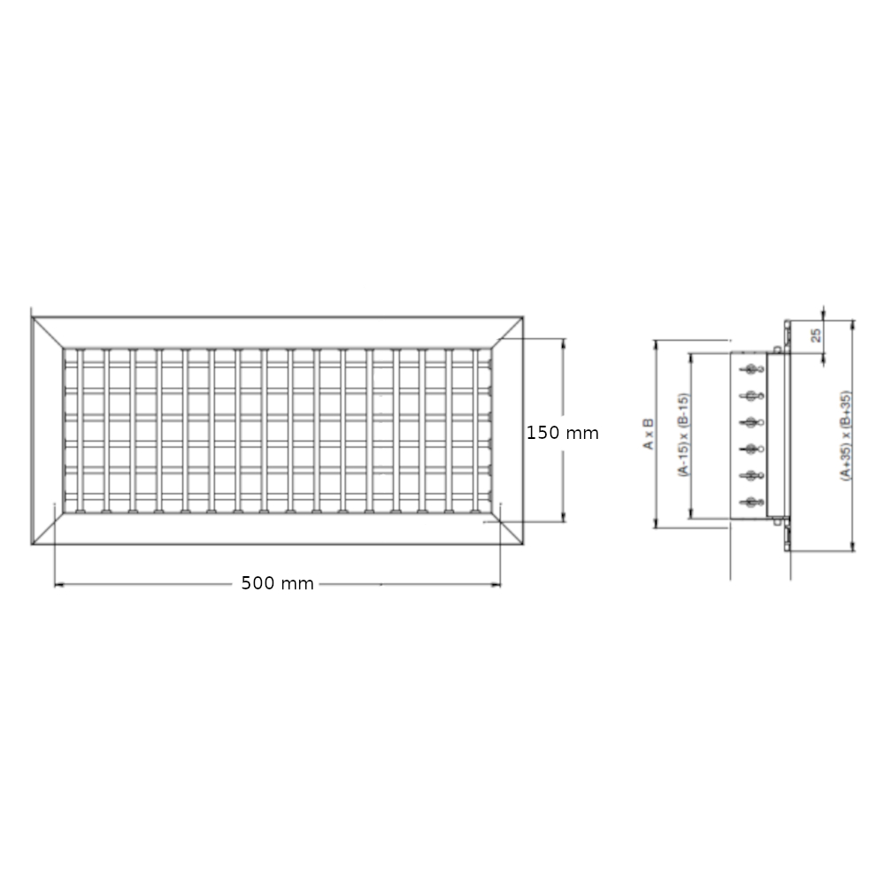 La bocchetta di mandata della serie BMA-VO è idonea alla mandata, cioè all’ emissione di flusso, dell’ aria negli impianti di raffreddamento e riscaldamento. Questa bocchetta ha alette a doppio livello e indipendenti con passo 20 mm. Tutte orientabili singolarmente al fine di ottenere varie direzioni del flusso dell’aria. Il modello BMA-VO è costituito da alette orientabili con i deflettori verticali nella fila davanti e orizzontali in quella dietro. La regolazione della direzione del flusso dell’aria avviene tramite lo spostamento manuale delle alette. Grazie alla sua struttura la bocchetta di mandata BMA-VO garantisce alte portate e ridotte perdite di carico e bassa rumorosità. Inoltre è possibile regolare la portata dell’aria con la serranda a contrasto ed anche aggiungere l’ elettronica con elemento motorizzato, entrambi venduti separatamente. Tuttavia altri accessori per la bocchetta di mandata dell’ aria BMA-VO sono il controtelaio di fissaggio in lamiera d’acciaio zincata CT ed il controtelaio per gancetti KC, oltre al plenum di raccordo PBZ. Il materiale di cui è composta è alluminio estruso anodizzato e verniciato bianco RAL 9010. Il montaggio è facile con un fissaggio standard a clip ed è adatta per una installazione a parete con altezza di tra 2,5 e 3,5 mt. Le misure sono per foro da 500 x 150 mm .