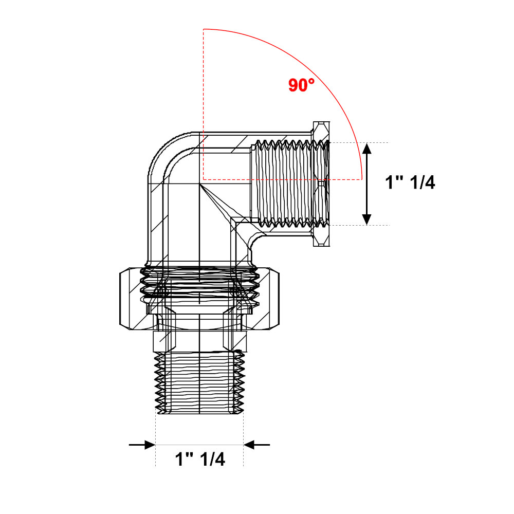 Il raccordo in ottone giallo pesante è utilizzato per collegare due tubi in impianti di riscaldamento, raffrescamento, impianti di acqua sia calda che fredda, aria compressa e in ogni installazione idraulica, industriale, commerciale, domestica ed agricola. Inoltre il raccordo in ottone giallo pesante è idoneo per il trasporto di acqua potabile. Il bocchettone curvo è ideale per ottenere un’angolazione di 90° ed è utilizzato per il collegamento di due raccordi in un impianto. Il bocchettone curvo ha un attacco maschio con filettatura 1″1/4  e un attacco femmina con filettatura 1″1/4. La filettatura del raccordo, più lunga e più liscia, permette al tubo di scorrere meglio ed è conforme alla norma UNI EN ISO 228-1:2003.