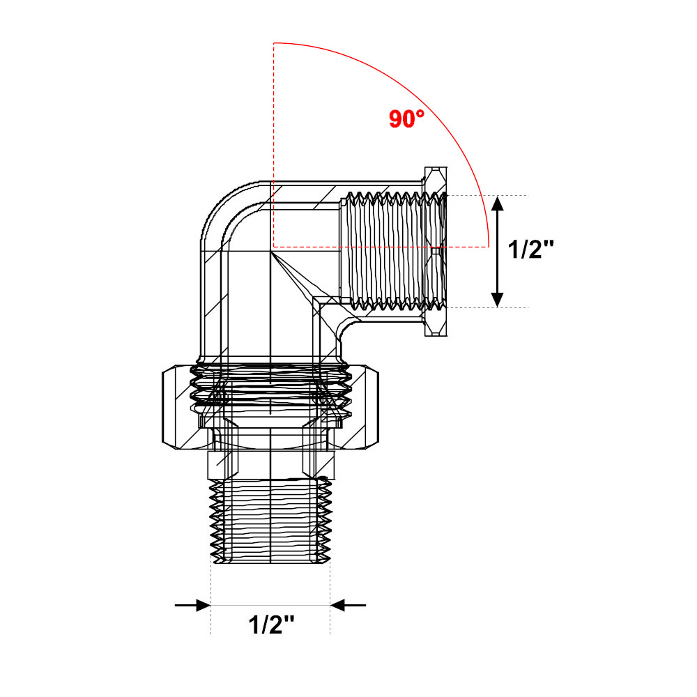 Il raccordo in ottone giallo pesante è utilizzato per collegare due tubi in impianti di riscaldamento, raffrescamento, impianti di acqua sia calda che fredda, aria compressa e in ogni installazione idraulica, commerciale, domestica, industriale ed agricola. Inoltre il raccordo in ottone giallo è idoneo per il trasporto di acqua potabile. Il bocchettone curvo è utilizzato per effettuare un collegamento di due raccordi con un’angolazione di 90°. Il bocchettone ha un attacco maschio con filettatura 1/2″ e un attacco femmina con filettatura 1/2″. La filettatura del raccordo, più lunga e più liscia, permette al tubo di scorrere meglio ed è conforme alla norma UNI EN ISO 228-1:2003.