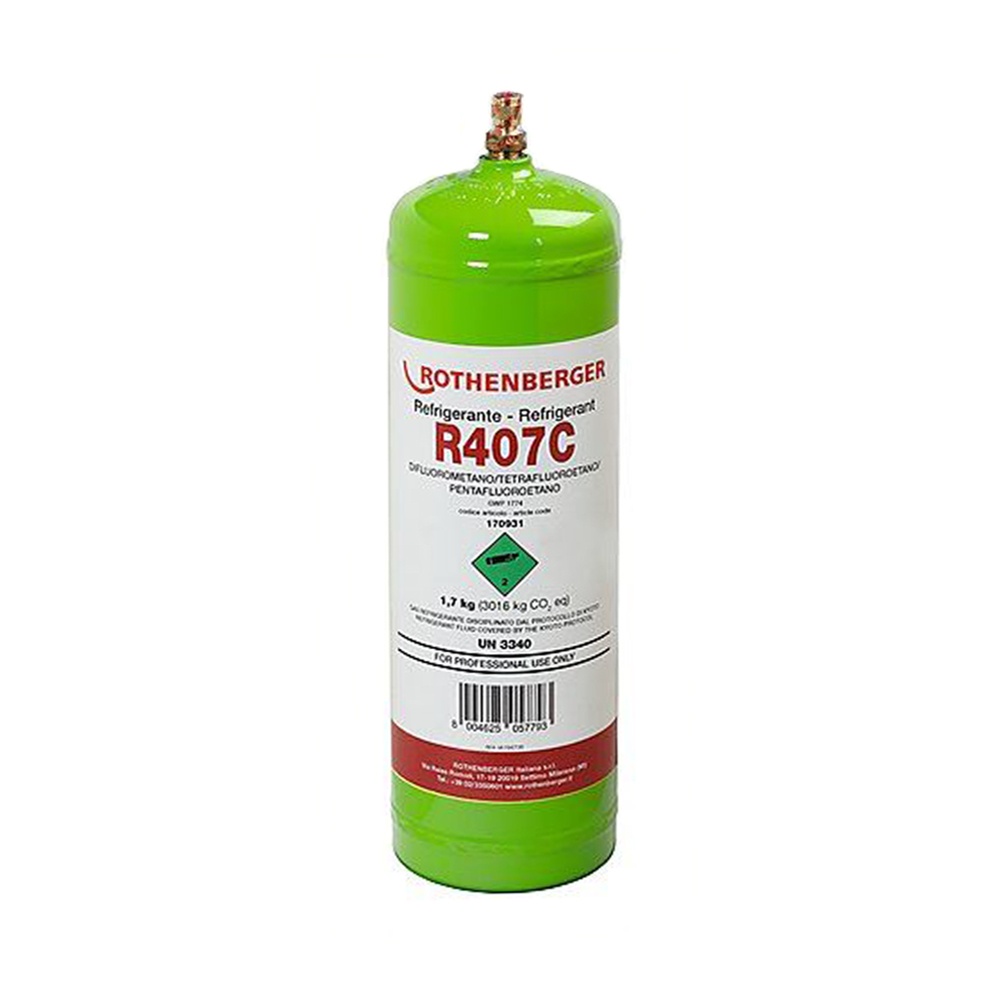 La bombola da 2lt Rothenberger contiene R407C che è un gas refrigerante ad uso professionale per la carica con gas di un sistema di refrigerazione e condizionamento. Il marchio rothenberger è sinonimo di alta qualità professionale soprattutto nel settore del condizionamento e refrigerazione. I 2 litri di gas refrigerante R407C sono forniti con una bombola in acciaio da 40bar. Il prodotto è adatto per la messa in opera di sistemi di condizionamento e pompe di calore.  Ha una base piatta per una maggiore stabilità ed è ideale per l’utilizzo in cantiere. La bombola da 2 litri è in acciaio, compatta e ricaricabile. Esaurito il gas il vuoto è a perdere ed inoltre lo smaltimento è facile dopo la rimozione della valvola. Il gas R407C è una miscela “non azeotropica” di tipo HFC. Pertanto è necessario utilizzare questo gas sempre in fase liquida per evitare possibili decomposizioni della miscela. E’ una miscela ternaria composta da R134a al 52%, R125 al 25% ed infine R32 al 23% e la presenza di R32 non rende il prodotto infiammabile. E’ principalmente utilizzato in sostituzione del gas R22 nelle applicazioni di condizionamento d’aria e ha un GWP pari 1.774 che lo colloca trai prodotti con un impatto medio sul riscaldamento globale con una eventuale dispersioone nell’ ambiente. Il gas in 2 litri ha un peso di circa 1700gr. L’acquisto delle bombole a gas è subordinato alla presentazione di apposito patentino.