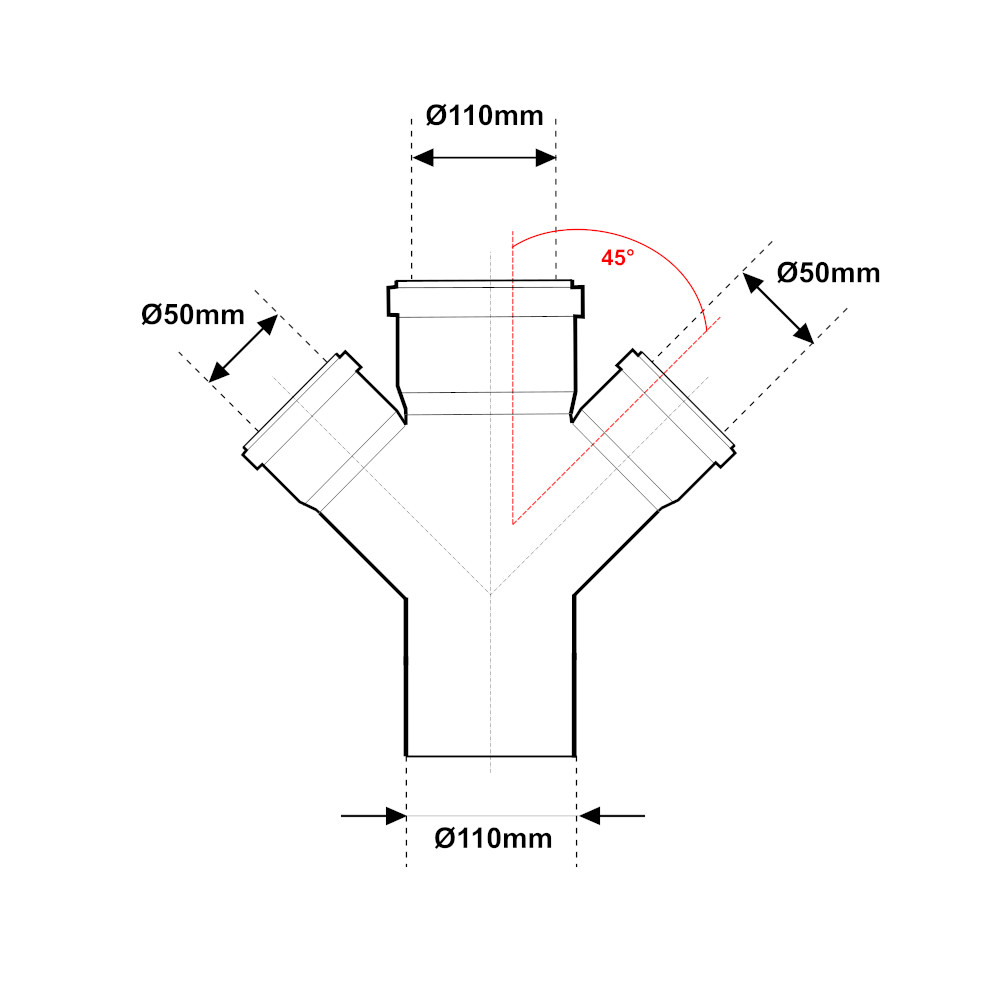 Il sistema in polipropilene grigio ad innesto è utilizzato per la realizzazione di impianti di scarico e trattamento delle acque reflue, drenaggio e di ventilazione. La braga doppia è utilizzata per unire tubi con diametro differente e per deviare il flusso in diverse direzioni. Il raccordo ad angolo permette di ottenere un’angolazione di 45°. La braga presenta un attacco maschio con diametro Ø110mm,un attacco femmina con diametro Ø110mm e due attacchi femmina con diametro Ø50mm. Il raccordo sfrutta il sistema a bicchiere con guarnizione idraulica ad innesto. Quest’ultima garantisce lo spazio necessario, per l’eventuali dilatazioni dell’impianto, dovute alle variazioni della temperatura.