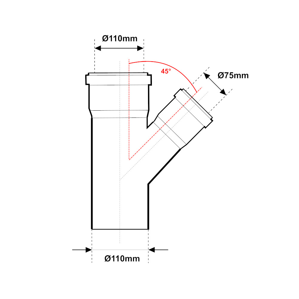 Il sistema in polipropilene grigio ad innesto è utilizzato per la realizzazione di impianti di scarico e trattamento delle acque reflue, impianti di drenaggio e di ventilazione. Il raccordo ad angolo è ideale per ottenere un’angolazione di 45°. La braga ha un attacco maschio con diametro Ø110m, un attacco femmina con diametro Ø110mm e un attacco femmina con diametro  Ø75mm. Il raccordo sfrutta il sistema a bicchiere con guarnizione idraulica ad innesto. Quest’ultima garantisce una solida tenuta senza perdite. Inoltre assicura lo spazio necessario per l’eventuali dilatazioni dell’impianto, dovute alle variazioni della temperatura.