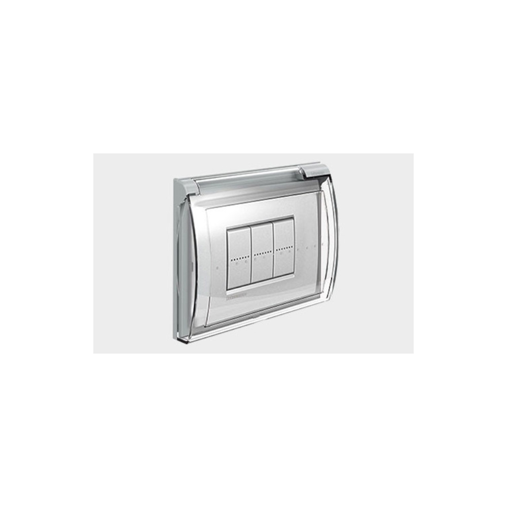 Custodia protettiva 3 posti IP44 di bticino compatibile con tutte le marche. Utilizzata per la protezione di scatole laddove sia richiesto un grado di protezione IP44.