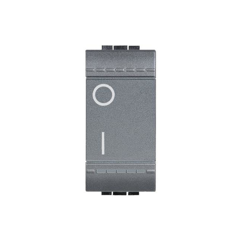 Interruttore bipolare 2P 16AX 250V antracite 0/1 di Bticino Livinglight. Utilizzato per il comando di elettrodomestici come lavatrice, scaldabagno elettrico, climatizzatore, caldaia a gas pellet gasolio