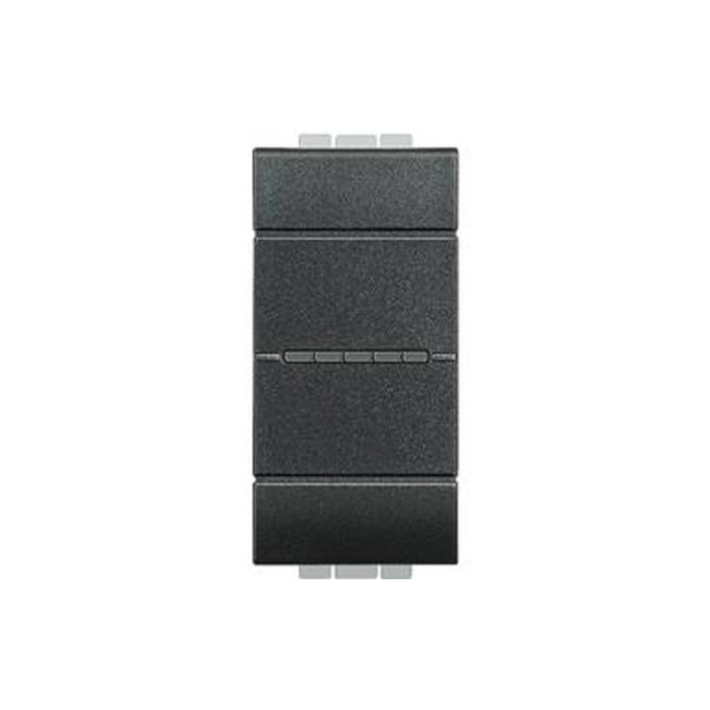 Pusante Assiale 1 polo con contatto 10A 250V normalmente aperto di Bticino Livinglight. Utilizzato per l’apertura di serrature elettriche di porte, oppure in abbinamento ad un relè interruttore o commutatore per l’accensione di lampade. Il pulsante è dotato di una molla che permette al tasto di tornare alla posizione di riposo quando viene rilasciato. Colore antracite. Indicato per le placche air.