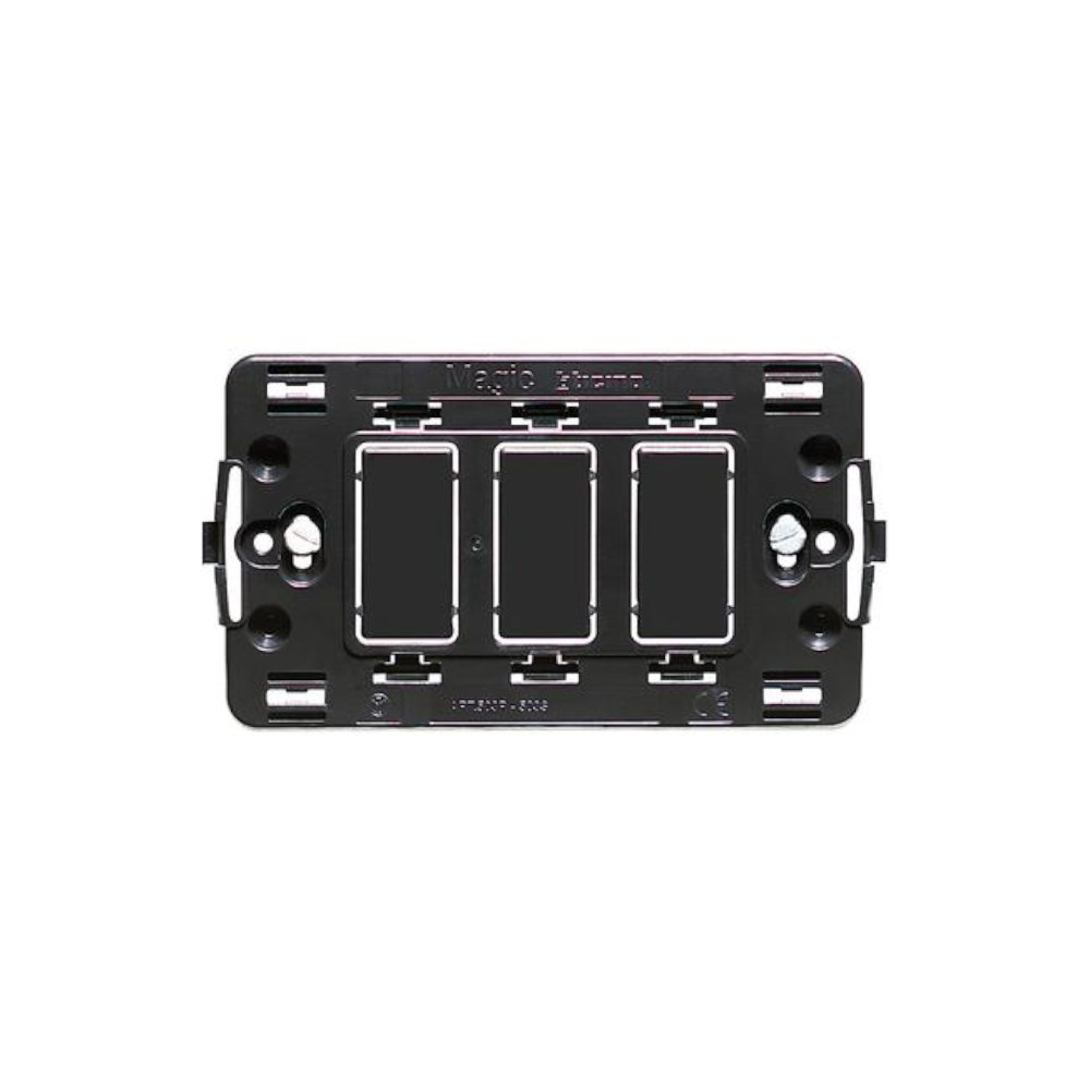 Supporto 3 moduli di Bticino Magic, per scatole rettangolari 503E. Il telaio o supporto serve per l’alloggio dei frutti come interruttori, prese, deviatori.