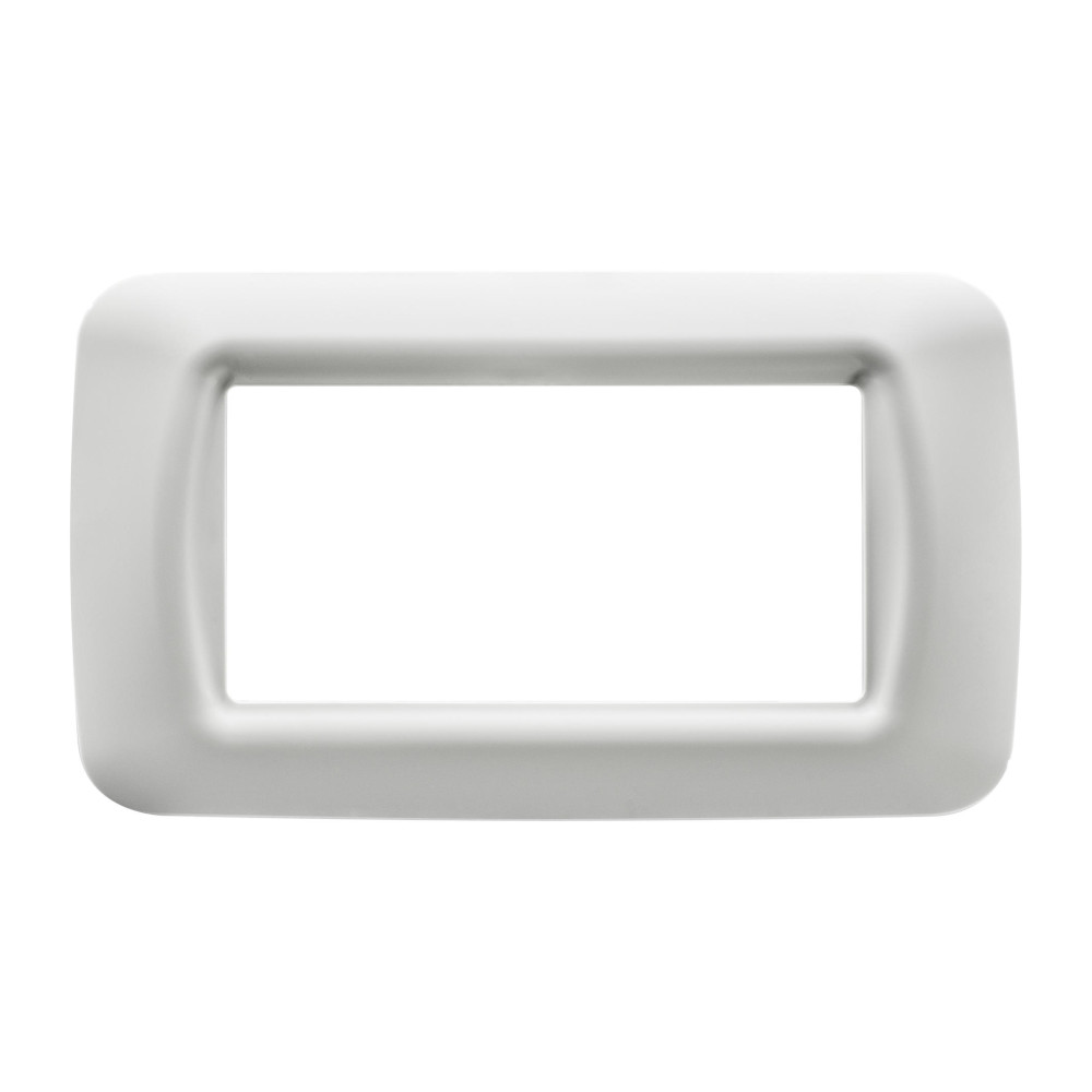 Placca 4 moduli in tecnopolimero bianco nuvola lucida di Gewiss Top System. La placca o mostrina si aggancia al supporto GW24202