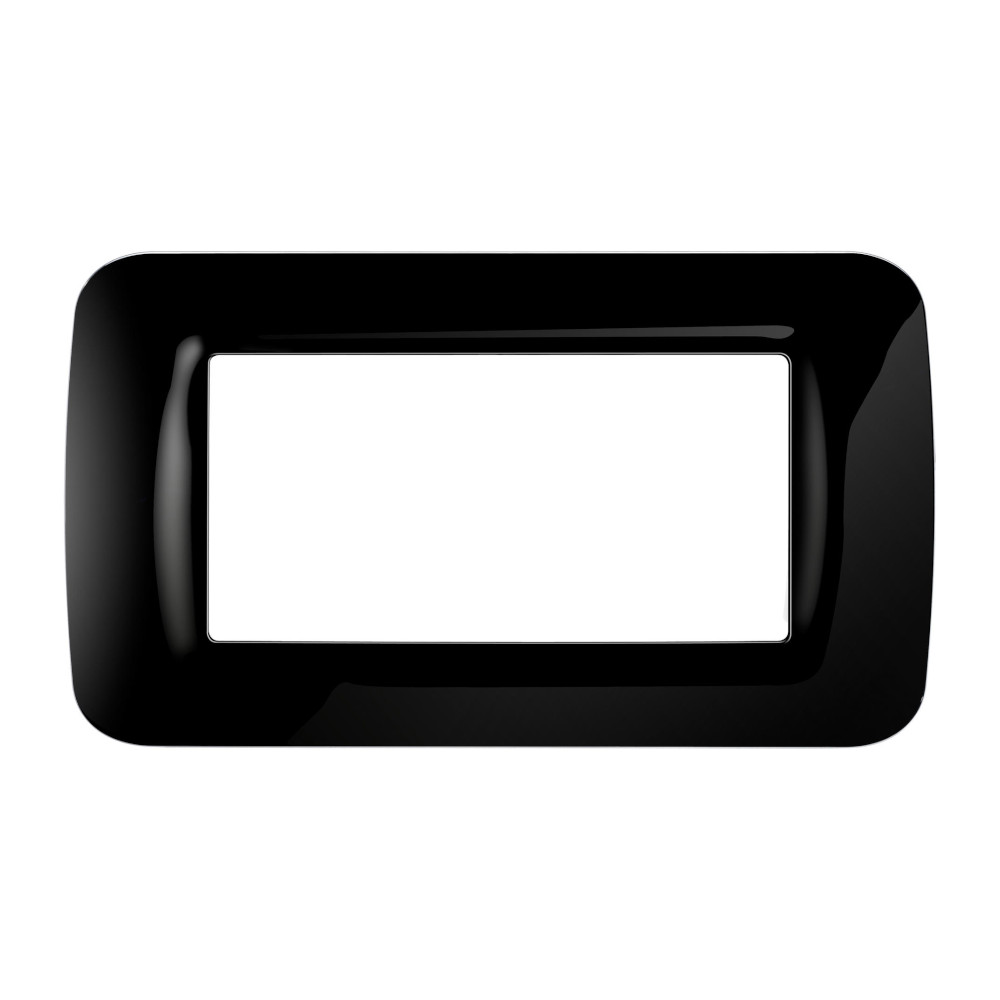 Placca 4 moduli in tecnopolimero nero toner lucida di Gewiss Top System. La placca o mostrina si aggancia al supporto GW24202