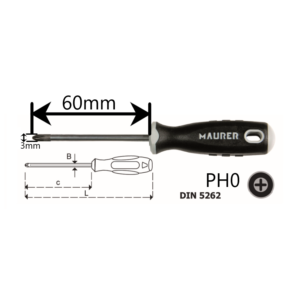 Cacciavite a croce Phillips PH0x60mm Maurer Plus