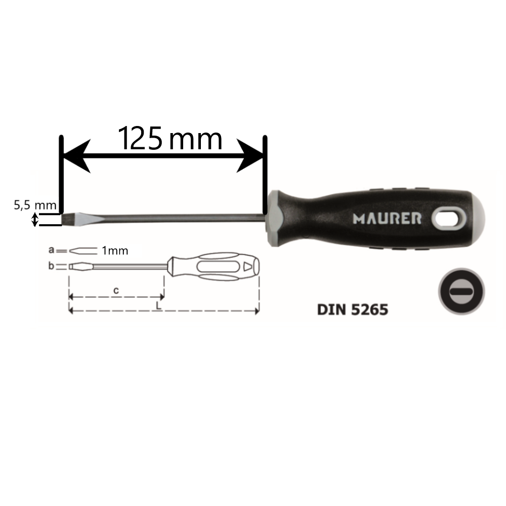 Cacciavite a taglio per meccanici 1×5,5x125mm Maurer Plus