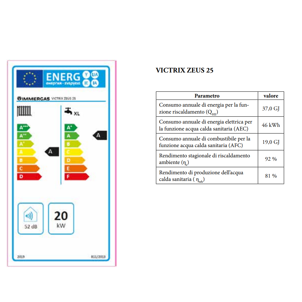 La caldaia a gas Victrix Zeus è compatta nelle dimensioni 41 cm. Un bollitore in acciaio inox da 45 litri ed una potenza di 25 kw. Grazie alla tecnologia della condensazione, presenta un elevato rendimento e garantisce emissioni inquinanti particolarmente ridotte (classe 6 di NOX). Si caratterizza inoltre per la presenza di una scheda elettronica “evoluta” con cambio di gas elettronico, senza sostituzione degli ugelli. Sistema di controllo della combustione autoadattante di gpl e metano. Inoltre con Immergas Victrix Zeus 25 è possibile l’ abbinamento opzionale ai dispositivi di controllo remoto Car V2 e SmarTech Plus. Questi permettono di gestire, controllare e programmare a distanza la caldaia con estrema semplicità, anche da smartphone, ottimizzandone la termoregolazione climatica. Grazie a questo con la caldaia Immergas di classe A si può usufruire di agevolazioni fiscali come l’ EcoBonus fino al 65%.
