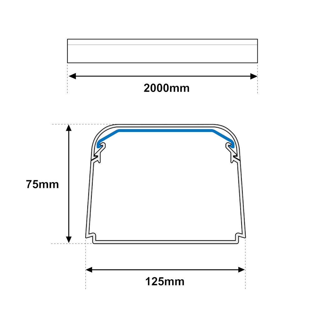 La canalina ha una larghezza di 125mm e un’altezza di 75mm. La barra ha una lunghezza di 2mt lineari.