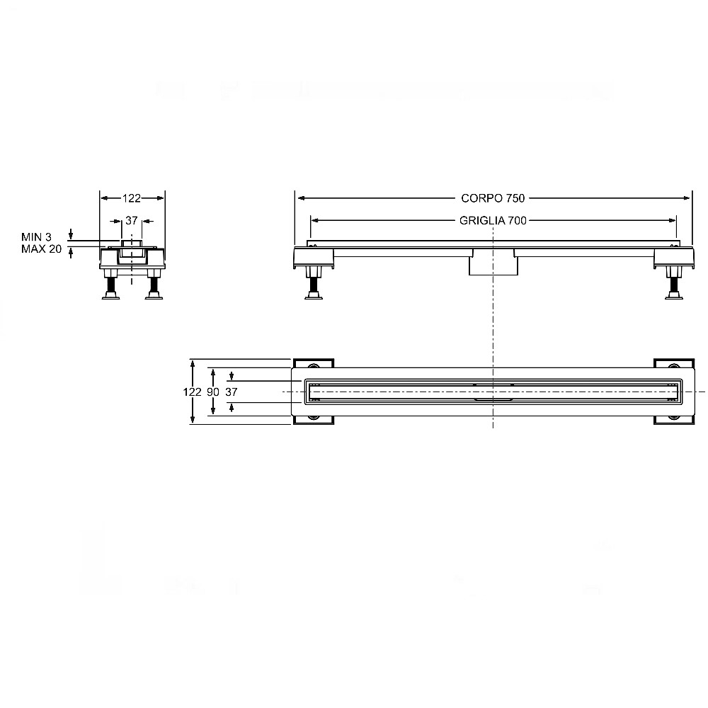 Canalissima inox MIXAGE Bonomini, consente di espellere le acque depositate sul piatto doccia. L’innovativo sistema di scarico MIXAGE è pensato proprio per proporre una valida alternativa al classico piatto doccia. Il prodotto consiste in una canaletta di scarico orizzontale con griglia piastrellabile e regolabile. È presente inoltre un telaio in ABS e una griglia in acciaio inossidabile AISI 316. Per di più è presente un sifone Sogliola che ha il compito di scongiurare eventuali ristagni d’acqua e la conseguente comparsa di cattivi odori. Infine la canalissima è dotata di uno uno scarico centrale lungo 70cm. La canalina di scarico Mixage è perciò la scelta perfetta per il vostro sistema di scarico, grazie ad esso potrete ottenere uno scarico piacevole visivamente ed estremamente funzionale. Per ulteriori informazioni riguardo la canalissima inox Mixage Bonomini consultare la scheda tecnica in allegato.