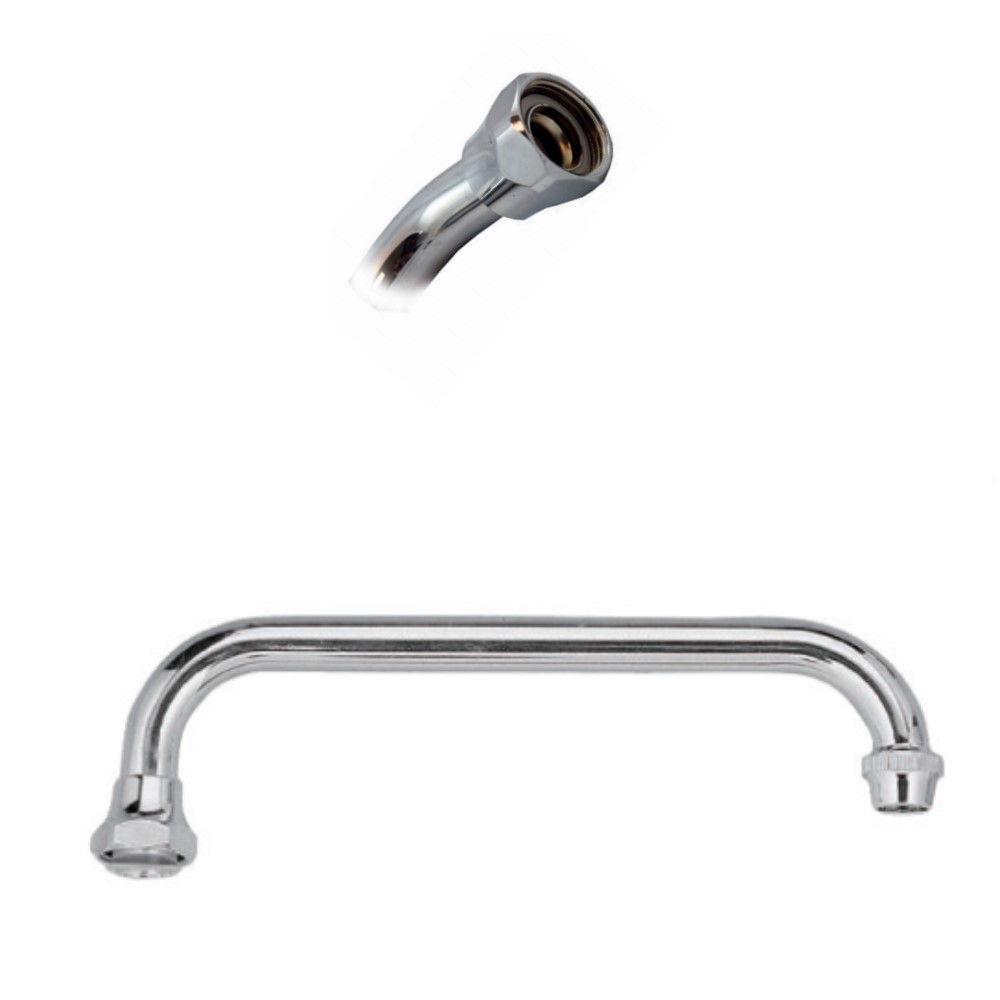 La canna di erogazione per lavello rovesciata girevole dalla forma ad “U” è in ottone cromato dispone di un attacco universale con la calotta femmina da 3/4 mentre le sue misure sono per una lunghezza di 20 cm con un ø 18 mm. La sola canna viene usata come sostituzione o per ricambio sulla rubinetteria già esistente. La canna universale a U per rubinetto a lavello è venduto completo e pronto all’installazione.