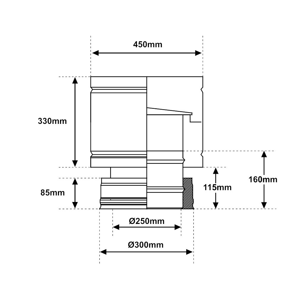Cappello antivento M in acciaio INOX a doppia parete Ø 250mm, adatto per evitare l’entrata di acque meteoriche all’interno della canna fumaria. Il raccordo terminale è la scelta ideale per la costruzione di impianti di scarico di fumi derivanti da combustione di gas metano, gasolio o legna. Il cappello antivento è realizzato in acciaio inossidabile a doppia parete, la parete esterna è in acciaio inox 304, mentre la parete interna è in acciaio inox 316.  Questa struttura a doppio strato consente di garantire un elevato isolamento termico, assicurando che non si verifichi la condensazione dei fumi in espulsione. È utilizzabile per di più sia per lo scarico a secco che per lo scarico umido. Il cappello a botte ha un diametro interno di 250mm ed un diametro esterno di 300mm. Mentre lo spessore della coibentazione è di 25mm. La scelta di utilizzare canne fumarie e raccordi in acciaio inox con adeguata coibentazione consente di ottimizzare la combustione e ridurre notevolmente sia i consumi che le sostanze inquinanti. Il cappello in acciaio è perciò la scelta ideale per il vostro impianto di smaltimento fumi. Il terminale a botte è disponibile in vari diametri.
