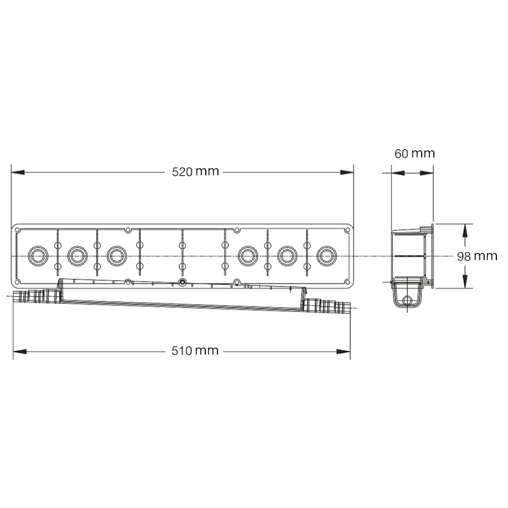 L 420mm cassetta ( L 510mm doppio scarico) x H 98mm x P 60mm