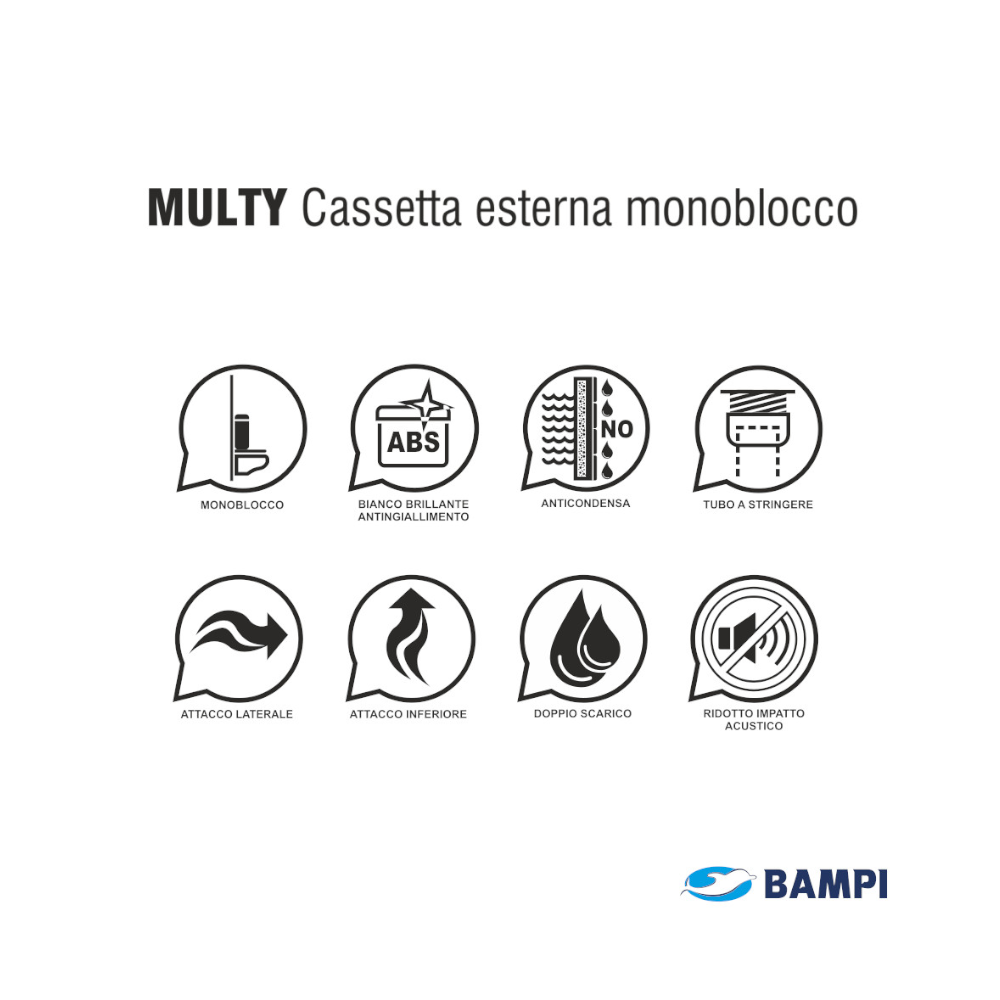 Scegli anche tu la cassetta WC BAMPI MULTY esterna monoblocco e scopri tutte le sue proprietà, rimodernando in modo semplice ma elegante, la tua zona bagno.
