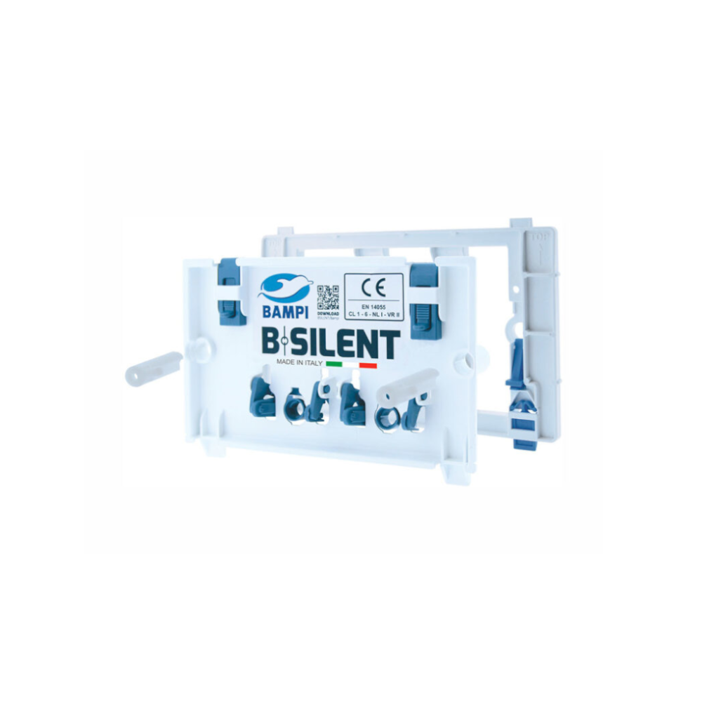 La cassetta Bisilent è realizzata in PE-HD a soffiaggio con rinforzi anti schiacciamento. Questo materiale vanta un’elevata resistenza ed una lunga durata nel tempo. Inoltre ha un rivestimento realizzato con Isolmant, un isolante termico e acustico. In dotazione un rubinetto d’arresto R 1/2 con anello integrato. Una protezione cantiere. Un tubo di risciacquo con protezione in EPS, regolabile ed un tappo di protezione. Presenta una pressione di 0.1-10cm, una temperatura massima dell’acqua di 30°C ed un’impostazione predefinita di 6 litri, della quantità di risciacquo. Un regolazione totale di 6-4 litri ed una regolazione parziale di 3-2 litri. La cassetta ha uno spessore di 80mm. Per ulteriori informazioni in merito alla cassetta di risciacquo Bsilent Bampi, consultare il documento in allegato.