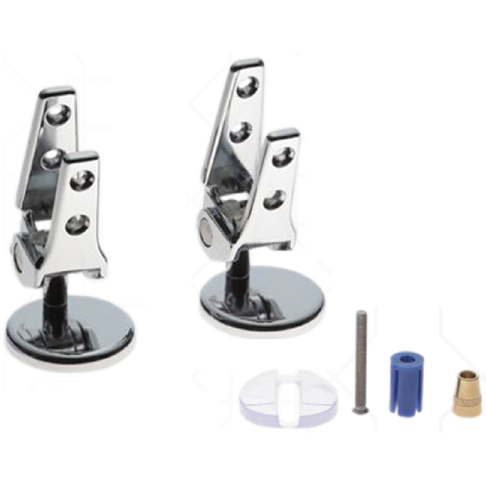 Coppia cerniere sovrapposta cromata ad espansione. Per sedili laccati e colati. Cerniera modello E con vite ad espansione.