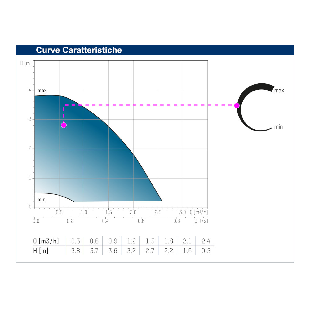 La pompa di circolazione PURE C 15-40/130 si alimenta con una tensione monofase 230V 50/60 Hz, offre una portata massima di 0,3 m3/h a 3,8m ed è munito di due attacchi filettati alle estremità, entrambi da 1″. Il motore è autoprotetto con protezione IP44 e classe di isolamento H. In aggiunta il potente motore è in grado di evitare anche i blocchi causati dal calcare durante i periodi di inattività del circolatore. Presente anche una spia sul fronte che indica il funzionamento del circolatore.