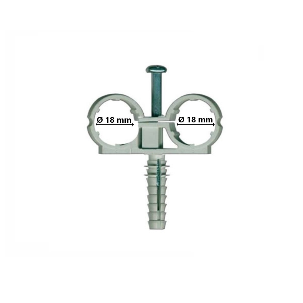 Supporto chiuso a collare doppio in materiale plastico per tubi rigidi in PVC completo di tassello incorporato e vite zincata. Ø 18 mm. Idoneo per materiali come calcestruzzo, pietra naturale, mattone pieno, mattone forato, mattone semipieno, blocco cemento vuoto. Ideale per ancorare tubi per installazioni elettriche, canaline rigide. Ideale per installazioni di canaline in fissaggi in parallelo e in serie. Facilita la velocità d’installazione. Temperatura di esercizio: -40°C÷ +40°C (max 80°C per breve periodo). Temperatura di posa: +5°C÷ +40°C. Le alette interne al collarino impediscono le oscillazioni dei tubi.