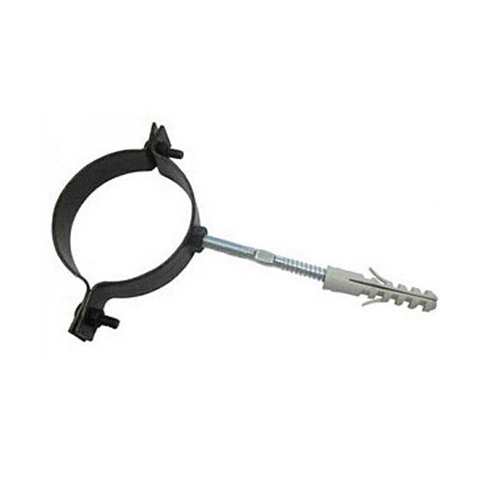 Il collarino è munito di due bulloni che garantiscono un’ottima presa sulla conduttura. Mentre il fissaggio a muro avviene tramite una vite e un tassello già fornito insieme al collare. La staffa di fissaggio in acciaio è disponibile in varie misure.