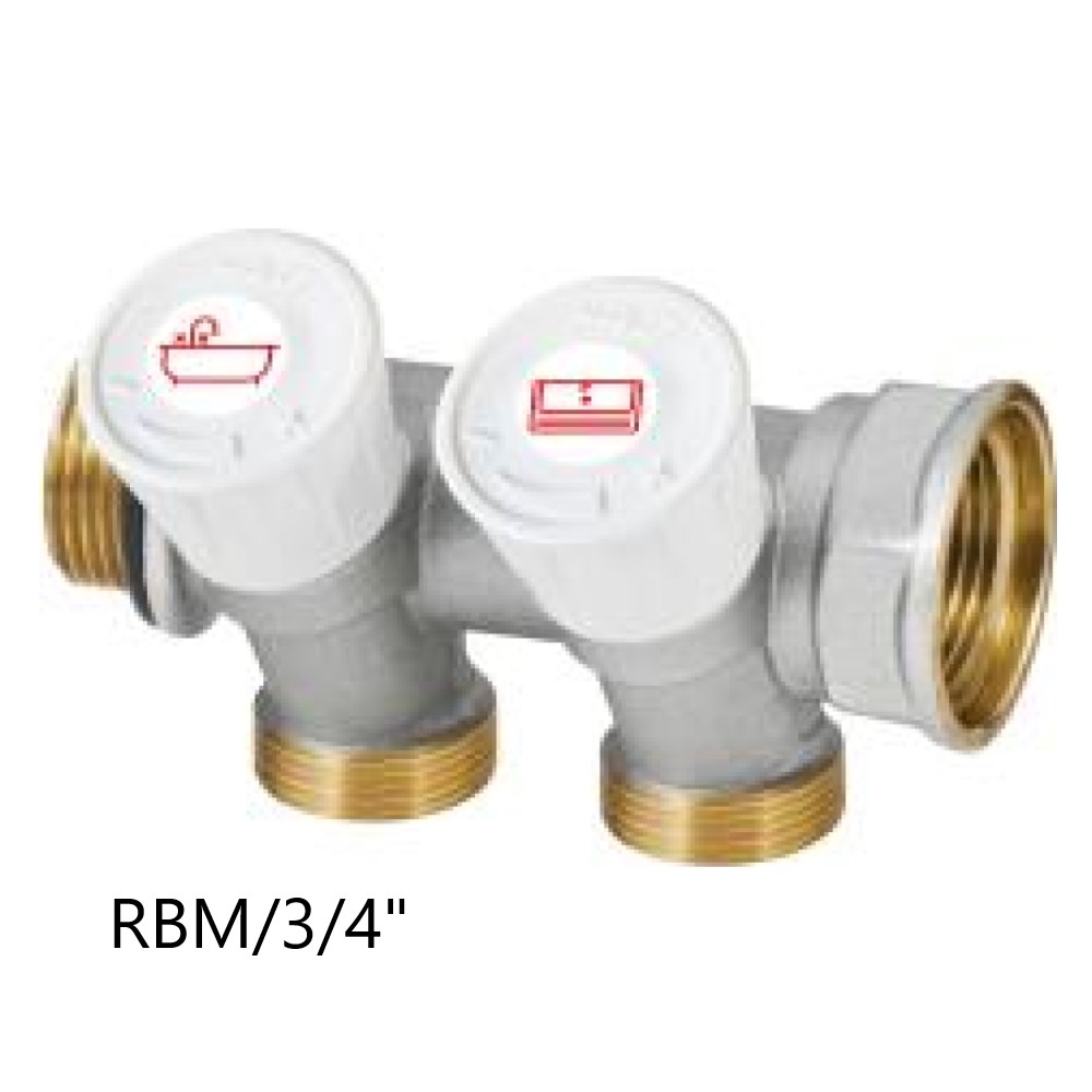 • Attacchi in derivazione, interasse 37 mm filettati M standard RBM per raccordi per tubo di rame, polietilene, multistrato