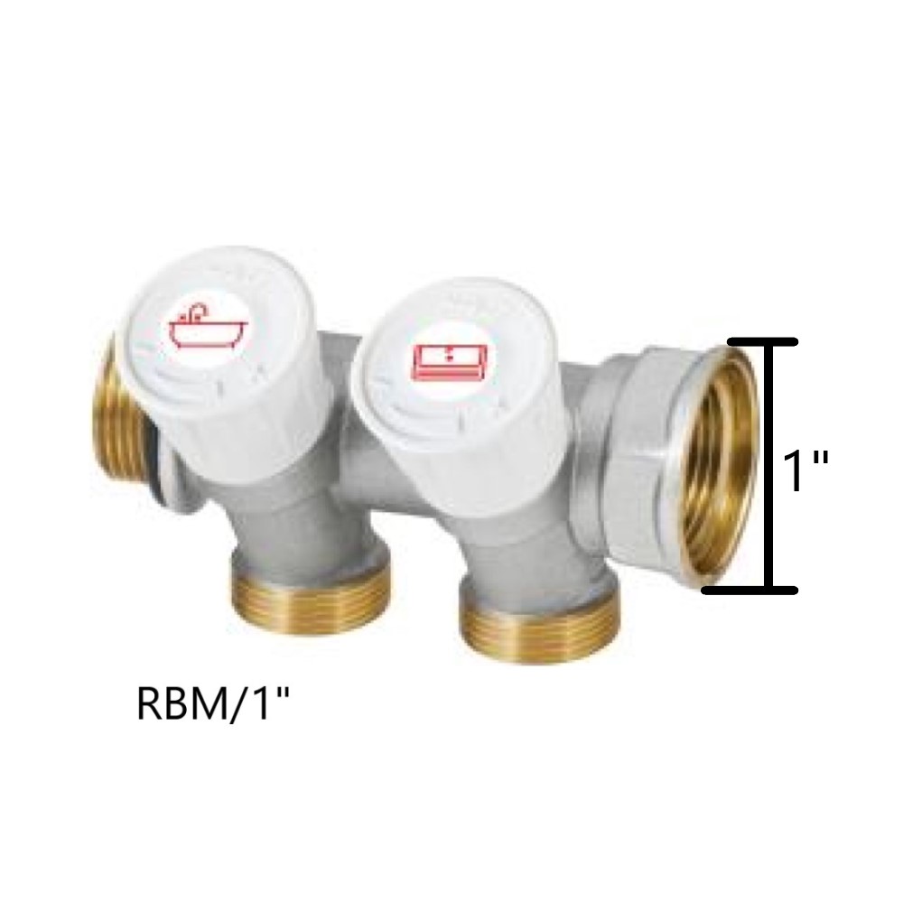 • Attacchi in derivazione, interasse 37 mm filettati M standard RBM per raccordi per tubo di rame, polietilene, multistrato