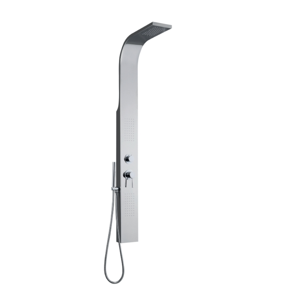 Per quanto riguarda la sua doccetta invece, quest’ultima ha uno stile squadrato per richiamare le forme e la finitura del deviatore. La parte superiore del pannello è leggermente inclinata per garantire la giusta direzionalità in ogni cabina doccia.