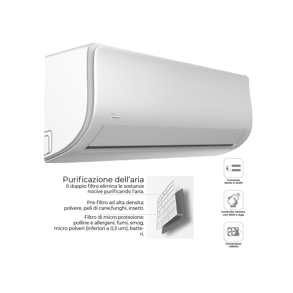 Scopri oggi il nostro condizionatore Trial 9000+9000+12000 BTU Midea Breezeless-E: stile unico, efficienza, eco-sostenibilità e tecnologia smart al servizio del tuo comfort!