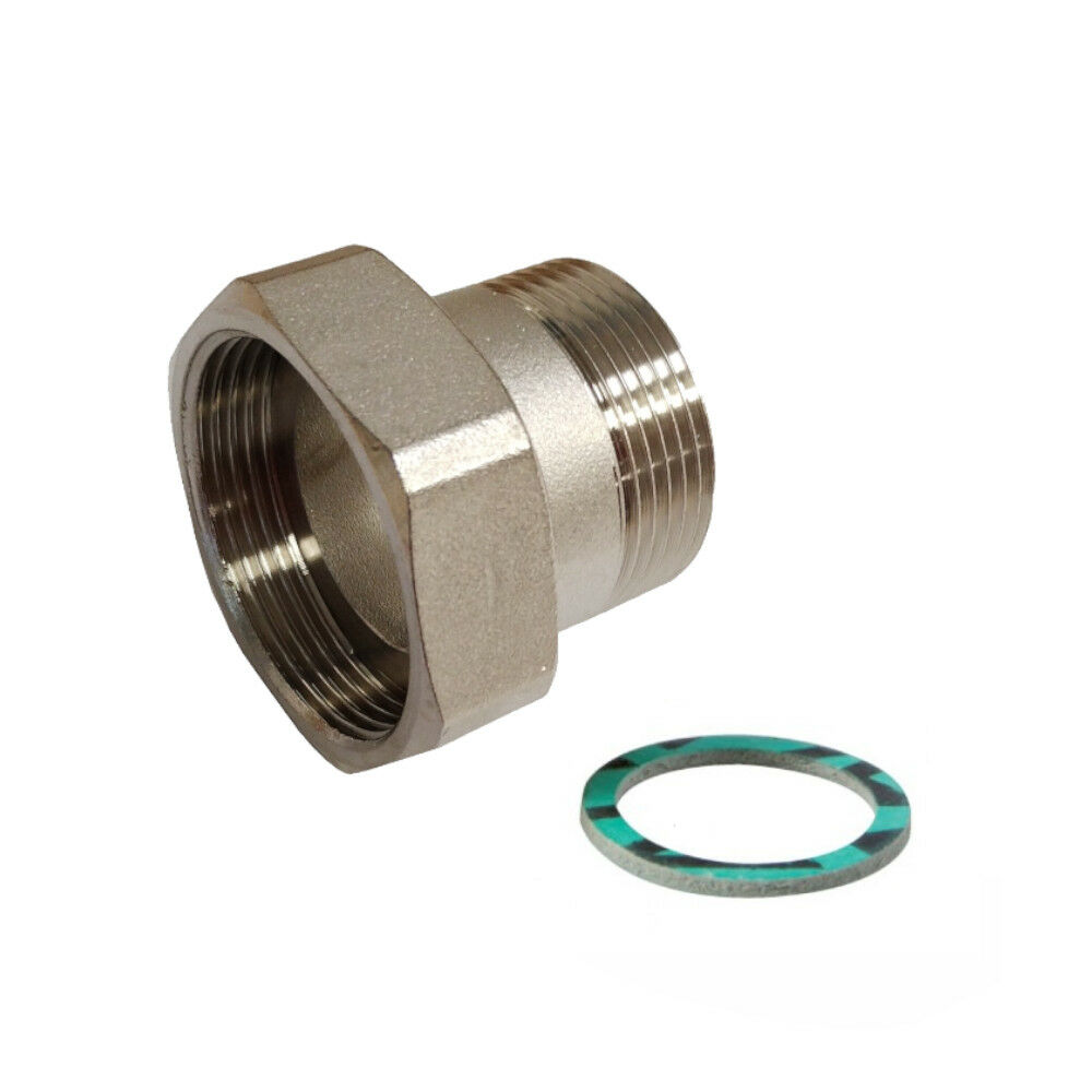 Il raccordo in ottone giallo pesante è utilizzato per collegare due tubi in impianti di riscaldamento, raffrescamento, impianti di acqua sia calda che fredda, aria compressa e in ogni installazione idraulica, commerciale, domestica, industriale ed agricola. Inoltre il raccordo in ottone giallo pesante è idoneo per il trasporto di acqua potabile. La coppia di bocchettoni è utilizzata per adattare il tubo al circolatore. Il kit comprende due bocchettoni in ottone, il quali hanno un attacco femmina con filettatura 1″1/2, e un attacco maschio con filettatura 1″1/4. La filettatura del raccordo, più lunga e più liscia, permette al tubo di scorrere meglio ed è conforme alla norma UNI EN ISO 228-1:2003.