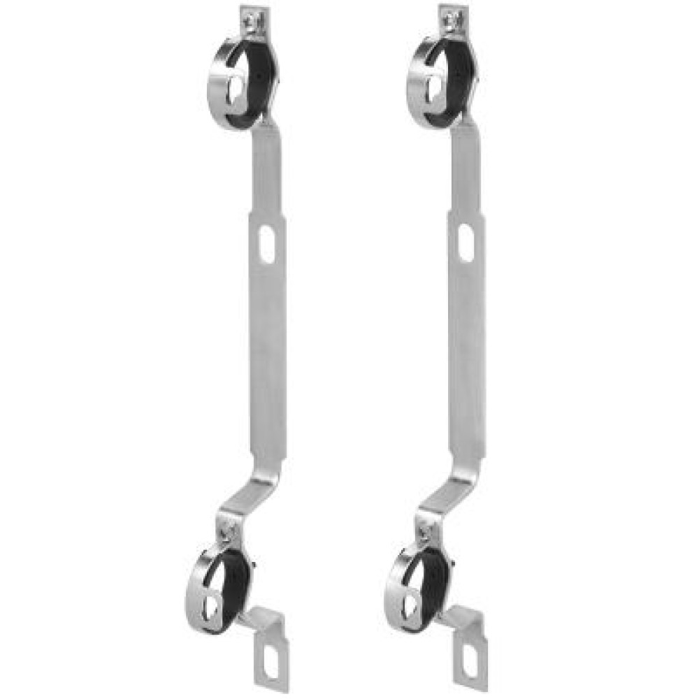 Coppia di staffe in acciaio complete di collarino, per il fissaggio allineato dei collettori modulari in ottone serie 3201 – 3202.