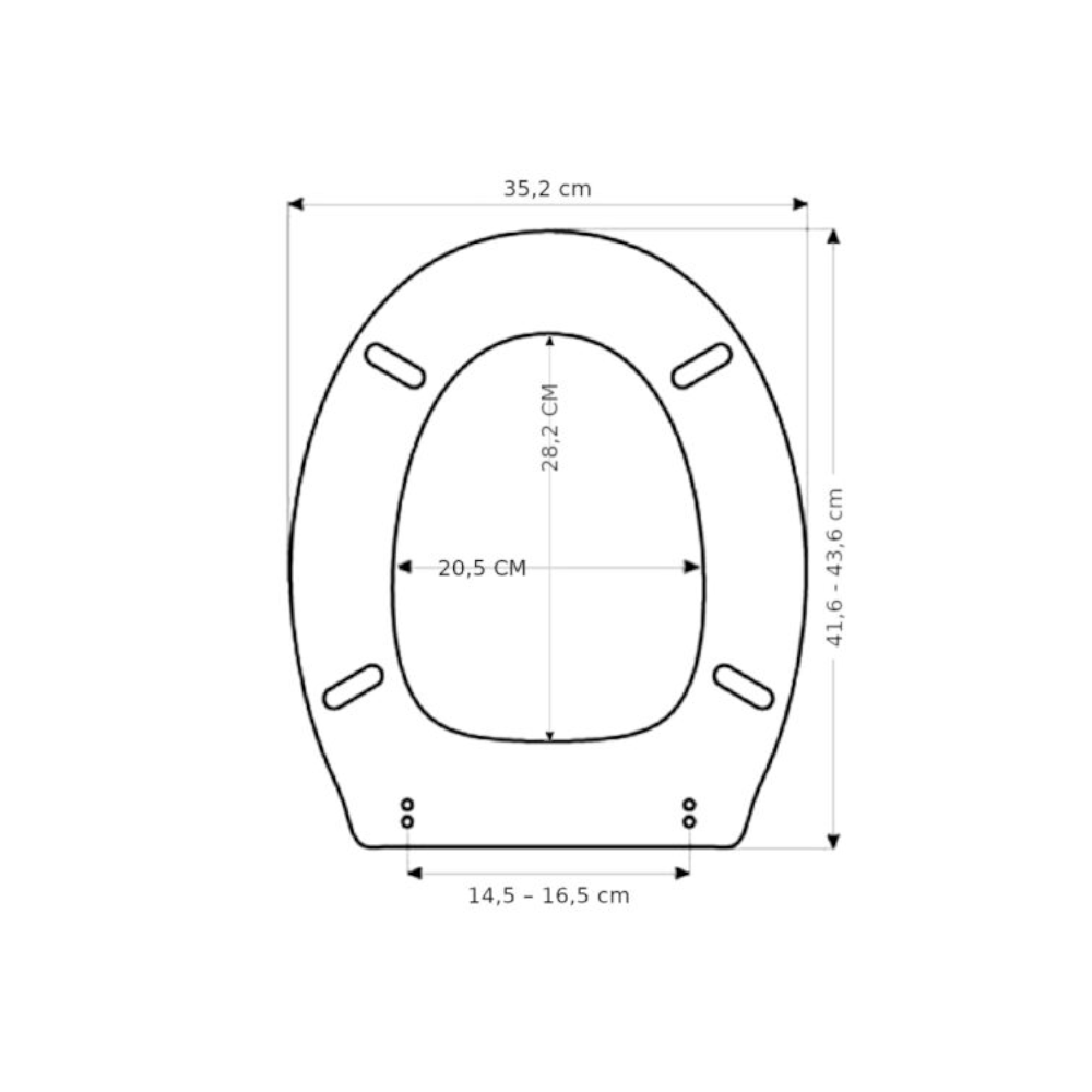 | Misure esterne ovale | 35,2 cm x 41,6 – 43,6 cm |