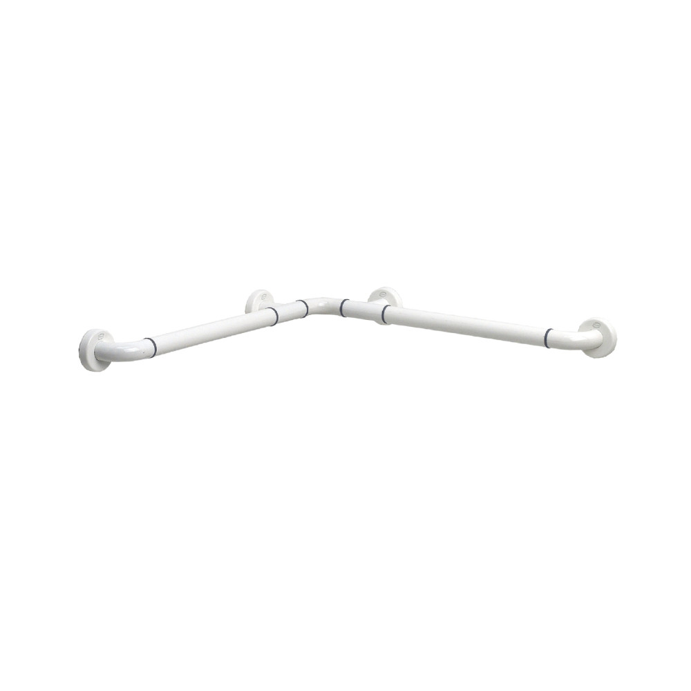 Il corrimano ad angolo è realizzato in materiale plastico ad altissima resistenza, di colore bianco e misura 67cm x 67cm, mentre le viti di fissaggio sono in acciaio inox, il maniglione è fissato sulle pareti ad angolo, da montare possibilmente ad una altezza non inferiore ad 80cm. Il corrimano di solito è utilizzato in posti generalmente frequentati da persone anziane o diversamente abili. Il corrimano è studiato per rispondere ad alcune esigenze, una fra queste è quella di poter resistenza a carichi pari ad almeno 150 kg, mentre un altra sua caratteristica è quella di essere anche un perfetto isolamento elettrico onde evitare la trasmissione di correnti vaganti.