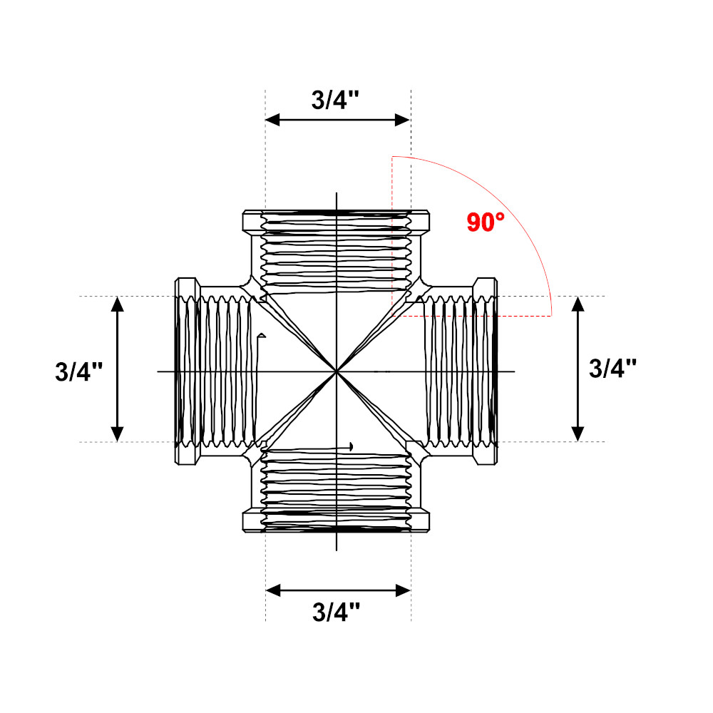 Il raccordo in ottone giallo pesante è utilizzato per collegare due tubi in impianti di riscaldamento, raffrescamento, impianti di acqua sia calda che fredda, aria compressa e in ogni installazione idraulica, commerciale, industriale, domestica ed agricola. Inoltre il raccordo in ottone giallo pesante è idoneo per il trasporto di acqua potabile. Il raccordo a croce è utilizzato per effettuare il collegamento di quattro tubature in un impianto. Il raccordo presenta quattro attacchi femmina con filettatura 3/4″. La filettatura del raccordo, più lunga e più liscia, permette al tubo di scorrere meglio ed è conforme alla norma UNI EN ISO 228-1:2003.
