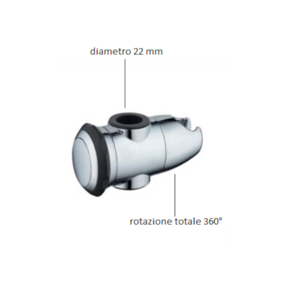 Cursore doccia Universale Prince è un elemento essenziale il quale permette di regolare in base alle tue esigenze l’altezza del soffione. Rendendo la tua doccia quotidiano, un momento unico e confortevole. Il cursore Universale è adatto per essere installato su tutte le docce standard e saliscendi da muro, di qualsiasi produttore nel commercio attuale. Il dispositivo ha un diametro di 22mm. Inoltre il cursore Prince presenta la possibilità di essere ruotato di 360°, per una massima praticità d’utilizzo del prodotto. In aggiunta è dotato di un pulsante, il quale permette di muovere con facilità il cursore lungo il saliscendi. Perciò risulterà essere un dispositivo versatile per tutti gli utenti della famiglia.