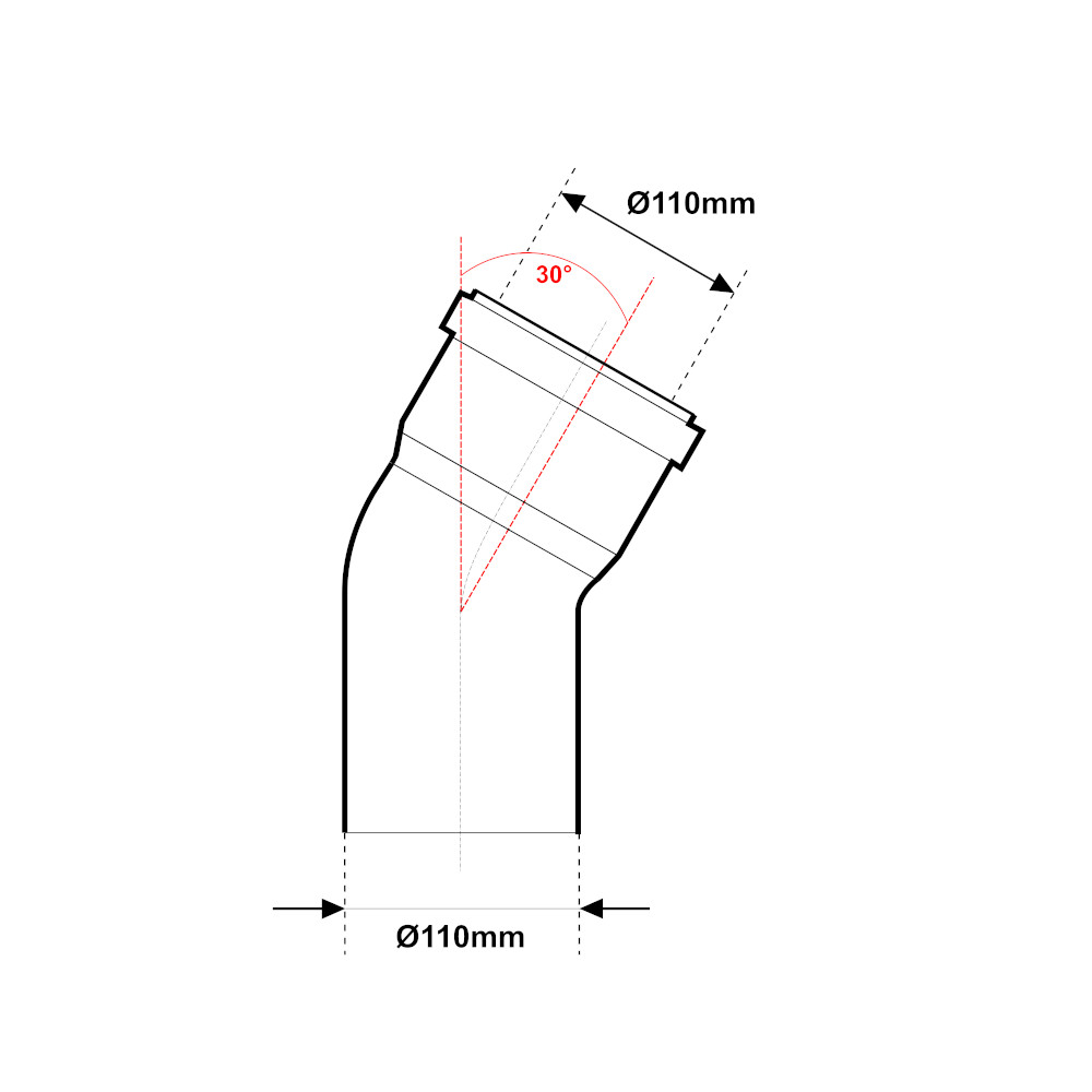 La curva a gomito Ultra Silent è un raccordo utilizzato per la realizzazione di impianti di scarico di acque reflue, impianti di irrigazione e di riscaldamento. La curva è impiegata per collegare due tubazioni ed ottenere un’angolazione di 30°. Il raccordo a fornito è idoneo per l’installazione in ambienti in cui è richiesta conformità in materia di isolamento acustico. Può essere applicata in ambienti residenziali, edifici commerciali e professionali. Inoltre è utilizzata anche per la realizzazione di impianti di ventilazione e aspirazione polveri. Il sistema Ultra Silent è compatibile alla connessione con altri materiali plastici in PP/PE-HD/PVC. La curva ha un attacco maschio con diametro Ø110mm e un attacco femmina con diametro Ø110mm.