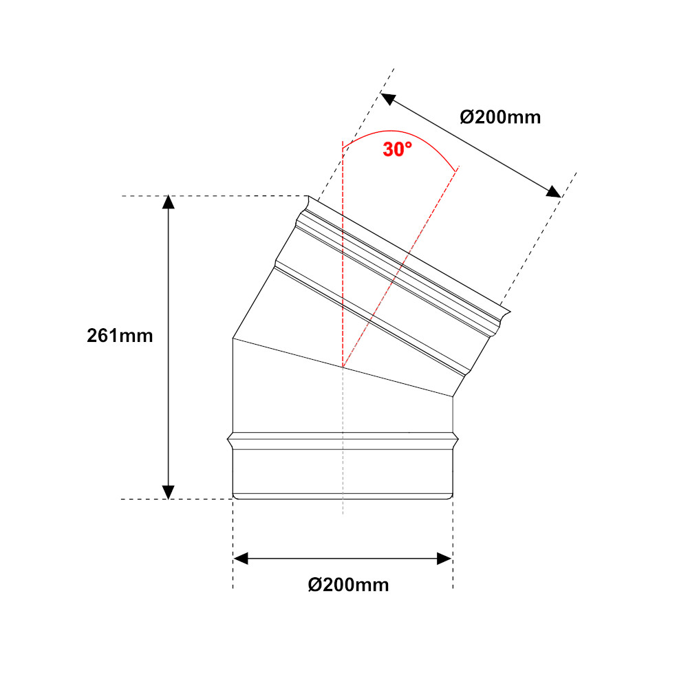 Curva 30° Monoparete Acciaio Inox Ø200mm Multiclima