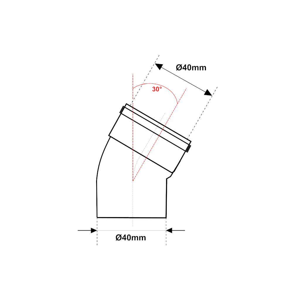 Il sistema in polipropilene grigio ad innesto è utilizzato per la realizzazione di impianti di scarico e trattamento delle acque reflue, impianti di drenaggio e ventilazione. Il raccordo ad angolo è la soluzione ideale per ottenere un’angolazione di 30°. La curva ha un attacco maschio con diametro Ø40mm da un lato, e un attacco femmina con diametro Ø40mm dall’altro. La curva è utilizzata per deviare il flusso che passa all’interno, cambiando la direzione del tubo. Il raccordo sfrutta il sistema con guarnizione idraulica ad innesto. Quest’ultima garantisce una solida tenuta senza perdite. Inoltre assicura lo spazio necessario, per l’eventuali dilatazioni dell’impianto dovute alle variazioni della temperatura.