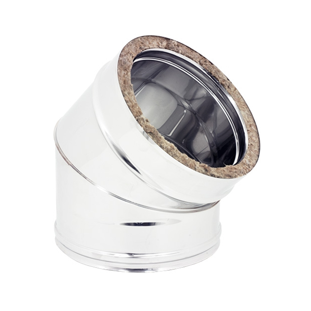 La curva 45° doppia parete acciaio inox è utilizzata per la realizzazione di sistemi di riscaldamento e combustione.