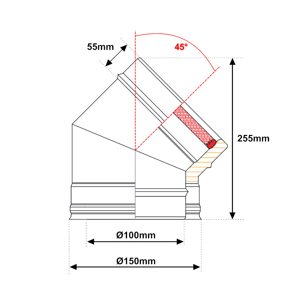 La combinazione tra qualità costruttiva, l’efficienza di tenuta e longevità operativa rende la curva 45° doppia parete acciaio inox una scelta privilegiata per il tuo sistema fumario.
