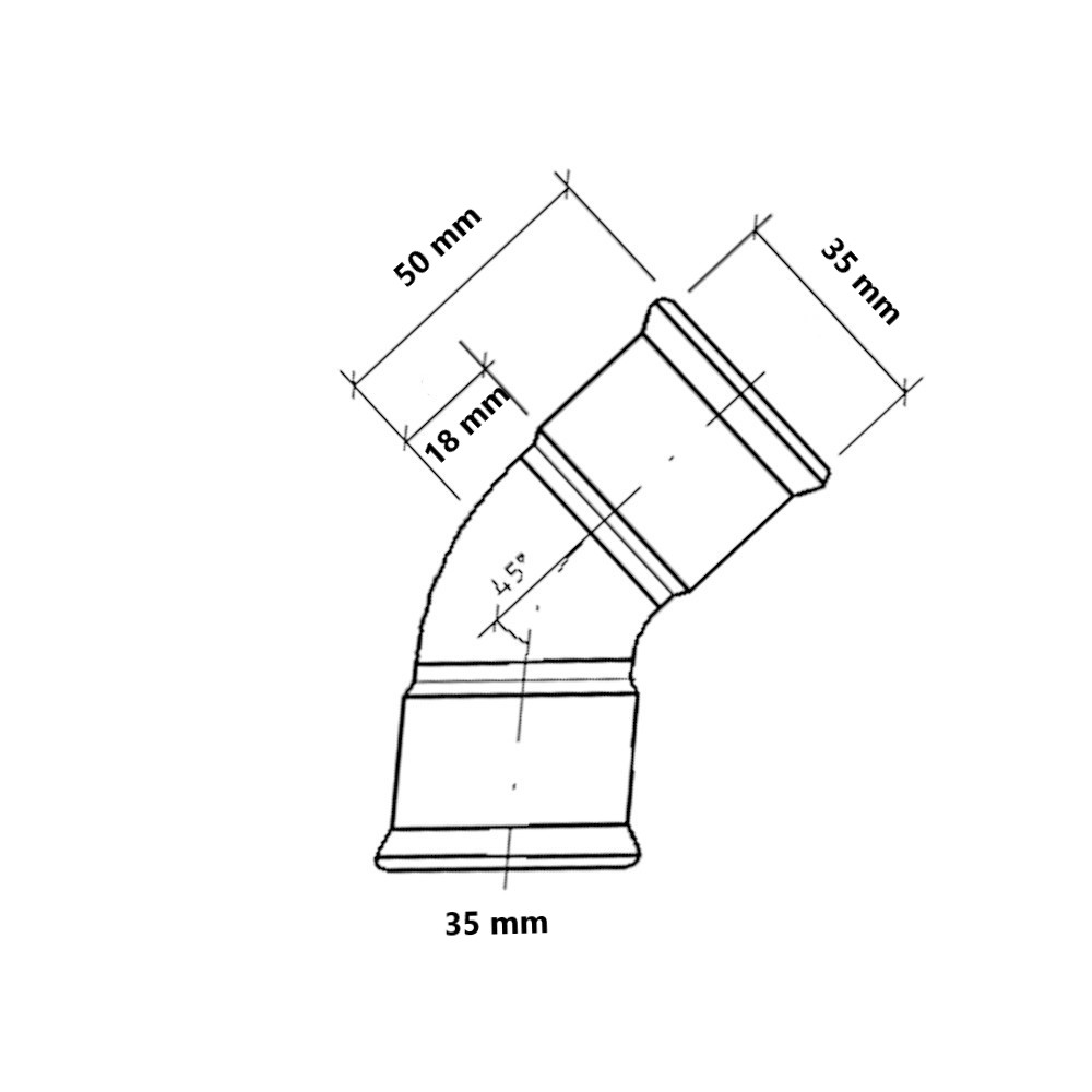 Curva 45° a pressare gas per tubo rame FF Ø35mm